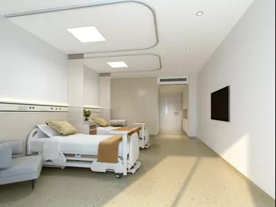 科室空間要根據科室的功能需求進行設計,在護士站要設置母嬰室、陪護等候區、直飲水區;在產科、病房的選材、選色和燈光設計上盡量家庭化,還宜設置愛屋、母嬰同室等,而手續辦理區域宜使用木色HPL板營造溫馨環境;在骨科病房及病人長期仰臥的病房內,要注意避免強炫光設計,液晶電視進行懸掛,適合臥床觀看;在兒保區域優化等候區,可以增設投影墻或互動屏,通過影像互動吸引兒童注意力,消除緊張情緒;在老年人、殘疾人或心腦血管康復病人的病房及其衛生間內,應距地面H=300MM高處各增設1-2處緊急呼叫(帶紅繩)鈕作為呼叫系統的補充和完善。