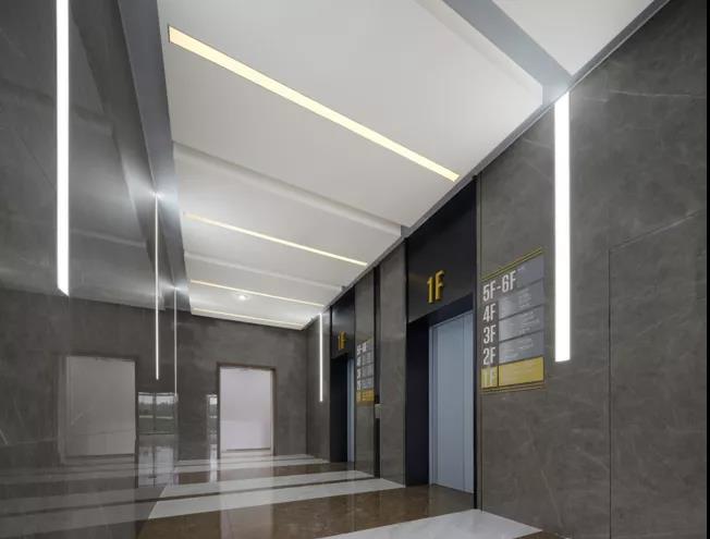 ▲ 圖50 專業化/尊貴化:綜合樓電梯廳線性燈光氛圍和標識標牌一體化