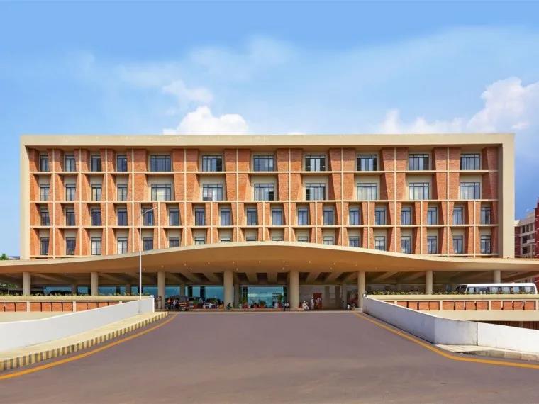 Symbiosis大學醫院和研究中心(SUHRC)占據Symbiosis國際大學在Lavale占地260英畝土地的山坡上,這是一家占地41,800平方米,擁有216張病床的多專科醫院,代表著一個嶄新的,進步的面貌印度的醫療保健基礎設施。憑借其最先進的醫療保健設施和增強技能開發的研究中心,它已牢固地立足成為COVID-19檢疫和治療設施,為馬哈拉施特拉邦抗擊疫情做出了貢獻。SUHRC的設計借鑒了親生物的思想(人類與生俱來的與自然和其他生命形式聯系的先天傾向),以促進患者和醫療保健專業人員的康復和復興。兩個開花的灌木叢和樹木環繞的大型庭院為室內帶來充足的日光和室外景觀,同時創建緩沖區以減少交叉感染。諸如重癥監護病房這樣的關鍵區域具有柔和的色調,以減輕焦慮。OPD沒有空調,但可以提供新鮮自然的空氣-從而減少了這些區域的氣流負載和功耗。從功能上講,該建筑包括四個部分。其中三個屬于醫院,最后一個是技能中心。醫院計劃分為五個級別;諸如OPD,傷亡,放射科,MHC等部門。