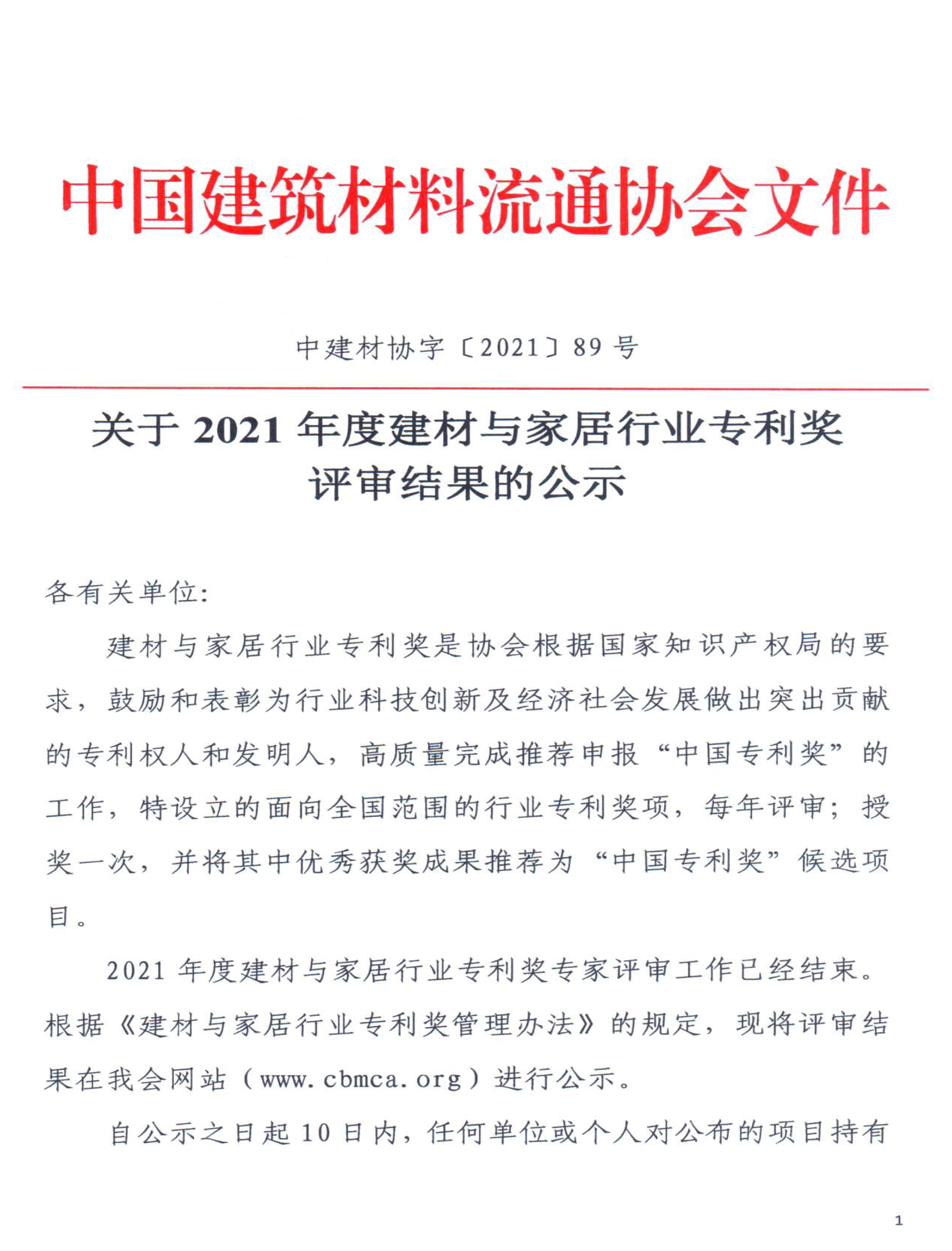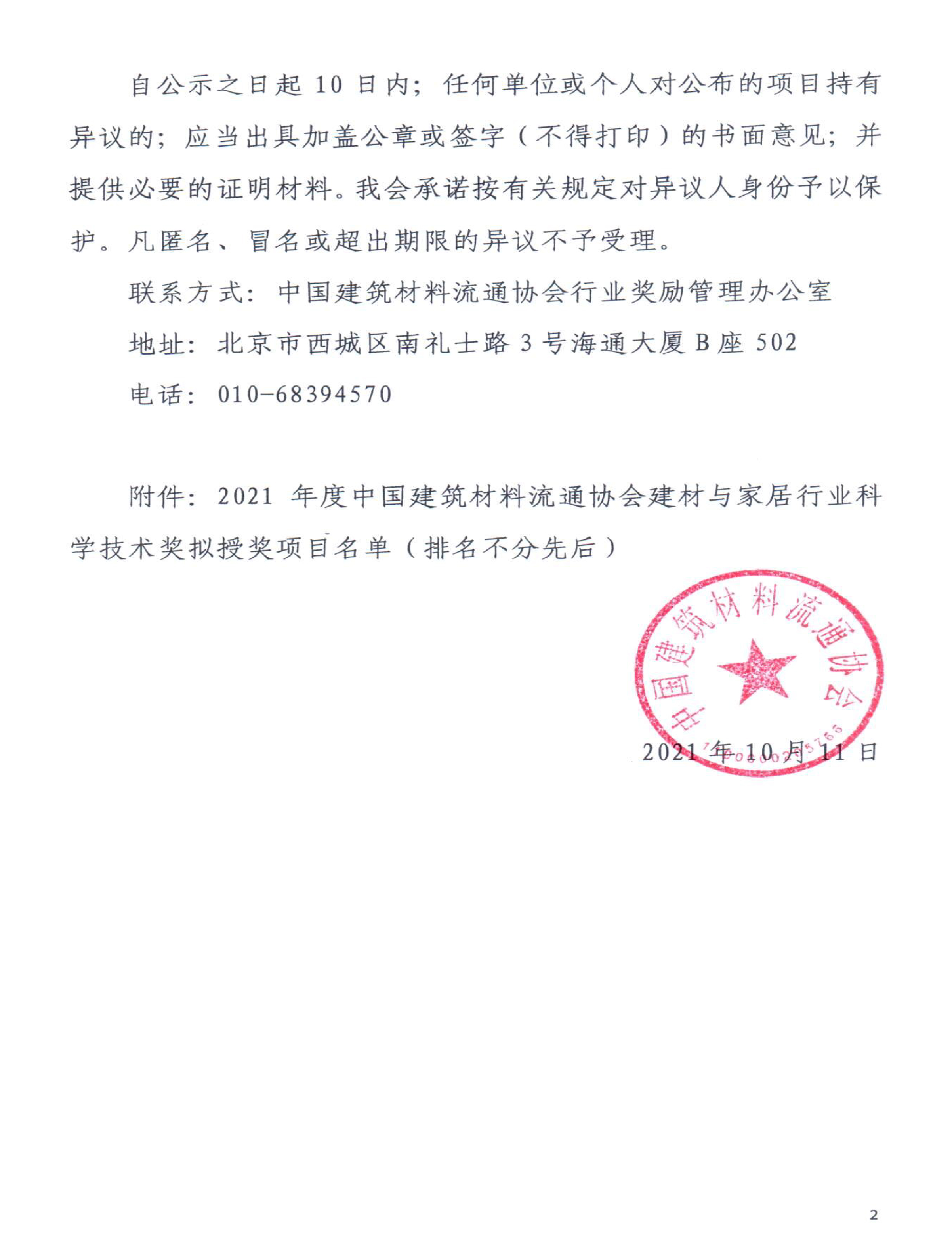 經國家科學技術獎勵工作辦公室審定批準,中國建筑材料流通協會作為承辦機構及責任主體并被授予終身編號0199號,在全國范圍內組織開展了2021年度科學技術獎的評選工作。最終評出獲獎項目共76項,其中基礎科技類8項,科技進步類24項,技術創新類35項,技術轉化類9項。