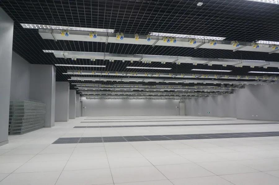 為了鋪設電源線及信號線方便,地面采用全鋼抗靜電的活動地板,其系統電阻應在1×105歐姆至1×108歐姆之間。活動地板還專門配有帶走線口的異形地板。放置活動地板的地面要平整、光滑,水泥地面或水磨石地面均可。機房內切忌鋪地毯,一是容易積灰,二是容易產生靜電。