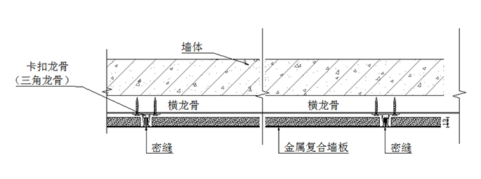 卡扣龍骨采用開模定制的鋁型材,特殊的卡扣結(jié)構(gòu)使得墻板之間緊固,達(dá)成表面看不到固件的密拼效果。