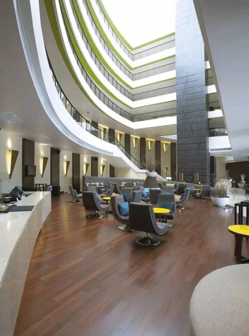大廳空間要求寬敞明亮、色彩怡人,應(yīng)保持充足的采光照明,并盡可能利用自然光,在大廳內(nèi)引進(jìn)綠色植物,并通過通透的外墻借室外園林景色,營造出讓病人可充分放松和消除緊張的感覺,指示標(biāo)識應(yīng)醒目,線路清晰易找,導(dǎo)醫(yī)、問詢安排在接近入口的合適位置,做到既不影響交通又使問詢方便。大廳應(yīng)保持良好的空氣質(zhì)量,對于全空調(diào)的大廳,裝修不得影響空調(diào)的氣流組織,墻、頂造型均應(yīng)與空調(diào)消防等專業(yè)密切配合。